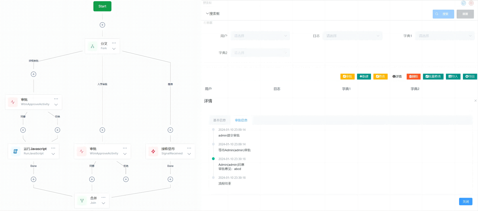 在模型设置中开启工作流,WTMPlus会自动为您生成可配置的流程,审批页面,审批历史等功能。